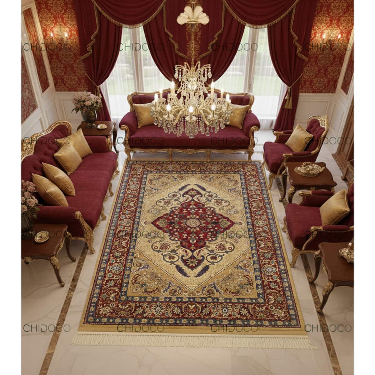فرشینه های چیدوکو از سه لایه تشکیل شده است که لایه رویی از جنس مخمل خارجی درجه یک، لایه میانی از جنس نمد و لایه زیرین آن استوپر میباشد که به هیچ عنوان روی سنگ و سرامیک حرکت نمیکند.