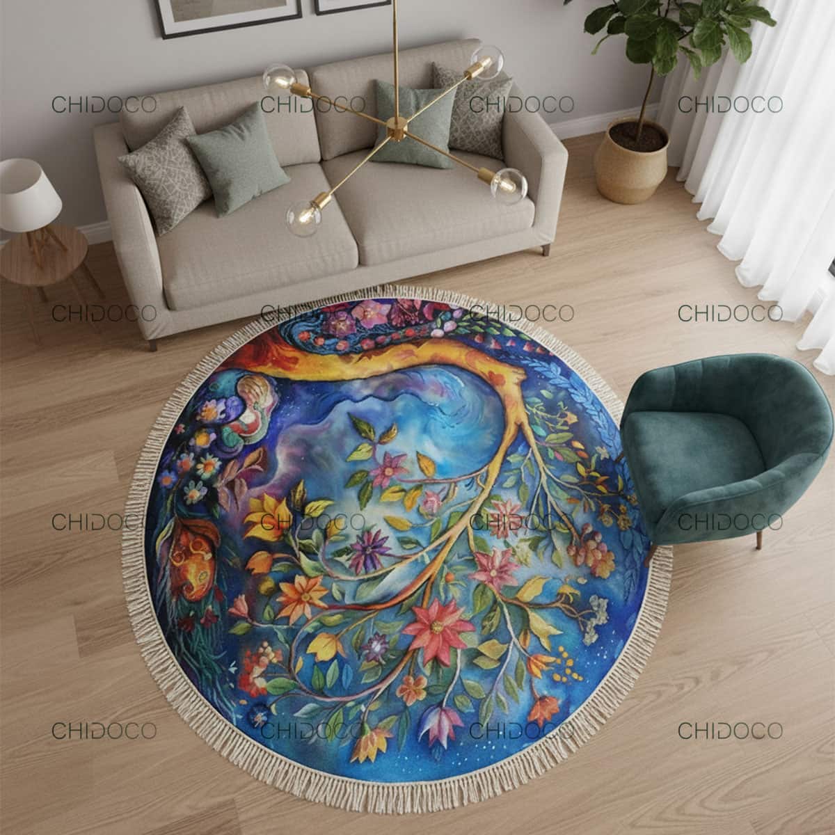 فرش گرد سنتی آبی طرح ابریشم کد R190