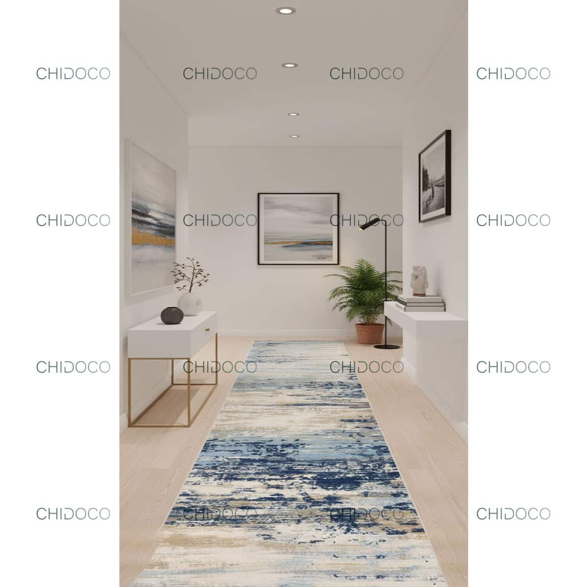 فرش راهرویی یا فرش کناره طرح پتینه آبی کد Roll07