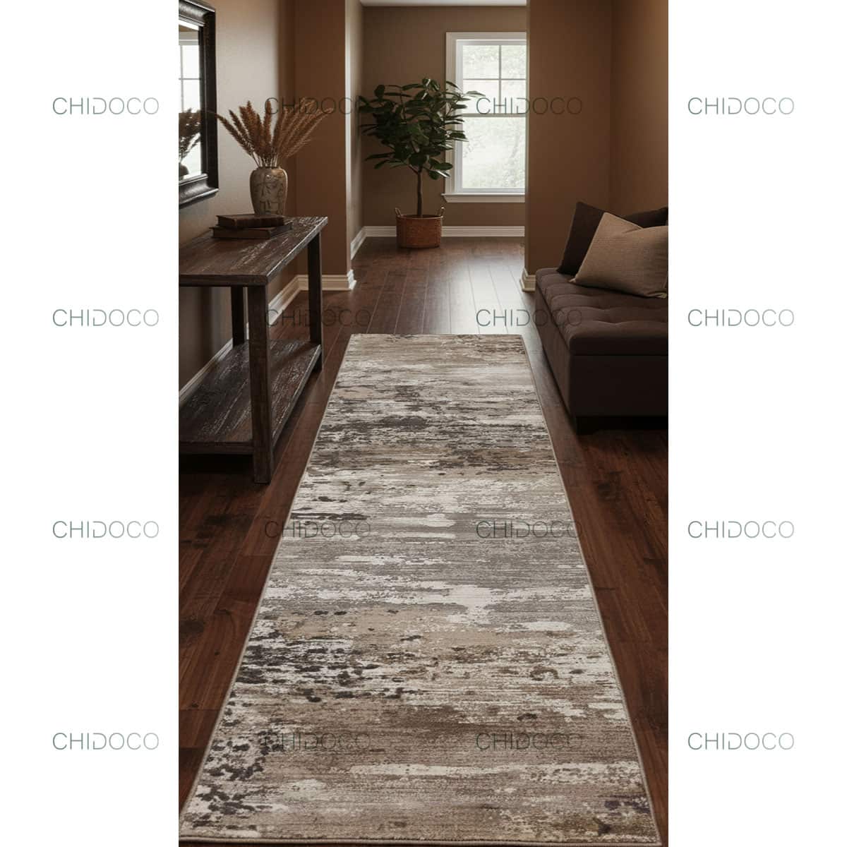 فرش راهرویی یا فرش کناره طرح پتینه قهوه‌ای کد Roll10