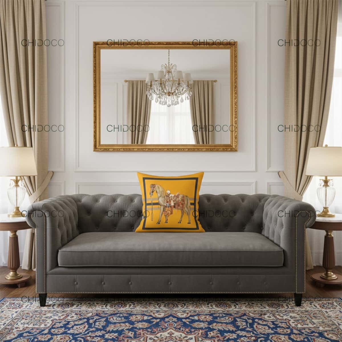 کوسن مبل زرد طرح اسب کد P068